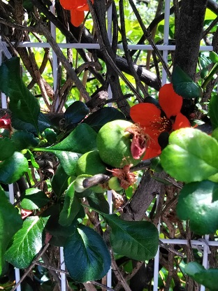 ボケ(木瓜)ですが、そろそろ終わりかけ,もう実がなっています