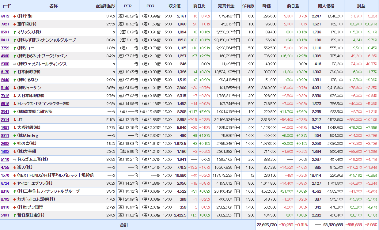 どちらかというと持ち高調整の売り。個別銘柄で機を見て短期売買が上手くはまった感。