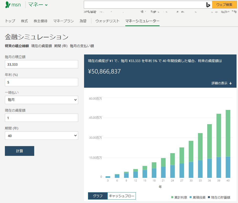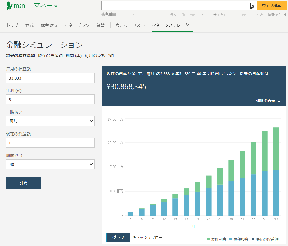 ・毎月33,333円の積み立てを40年続けた場合に、