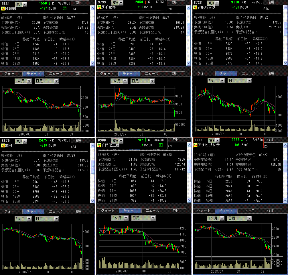 代替エネルギーや環境関連の下げはすごかったですね~。今日はさすがにリバウンドしてましたが、アームなんかはいつ見ても高いんじゃないの?と感じます!