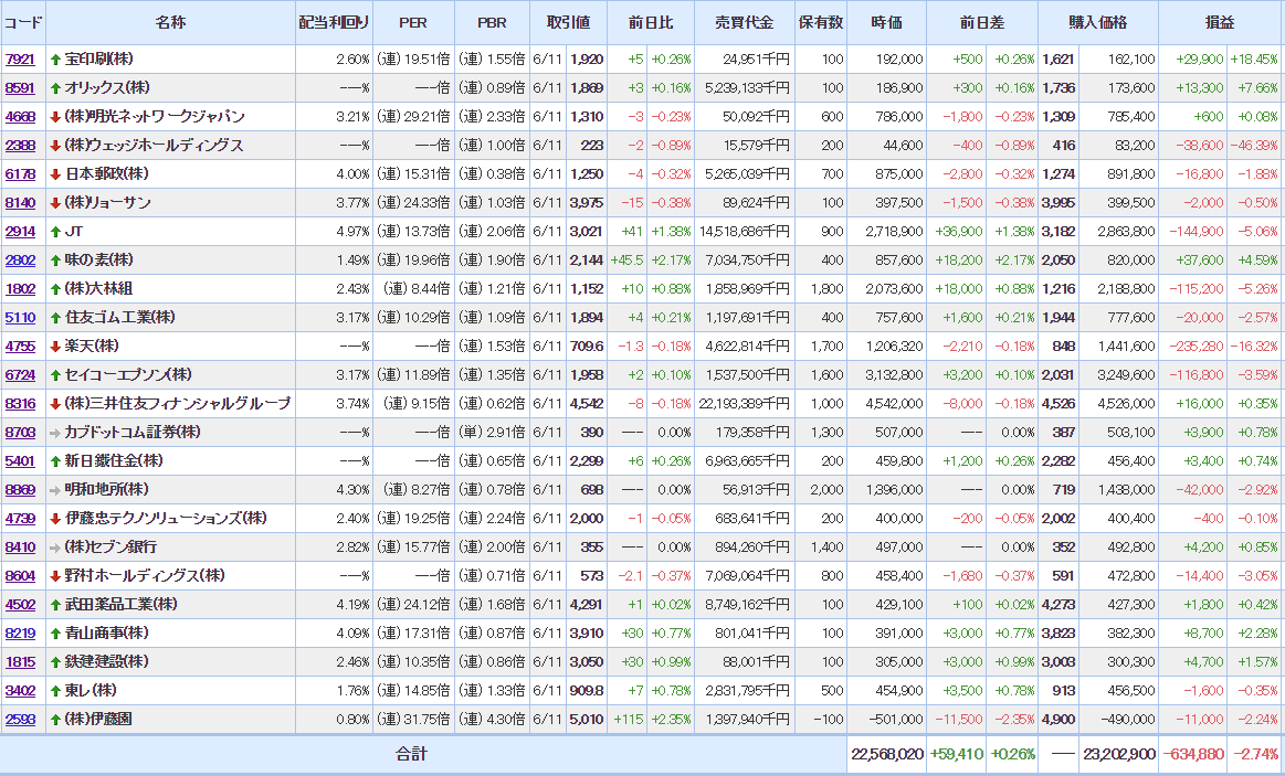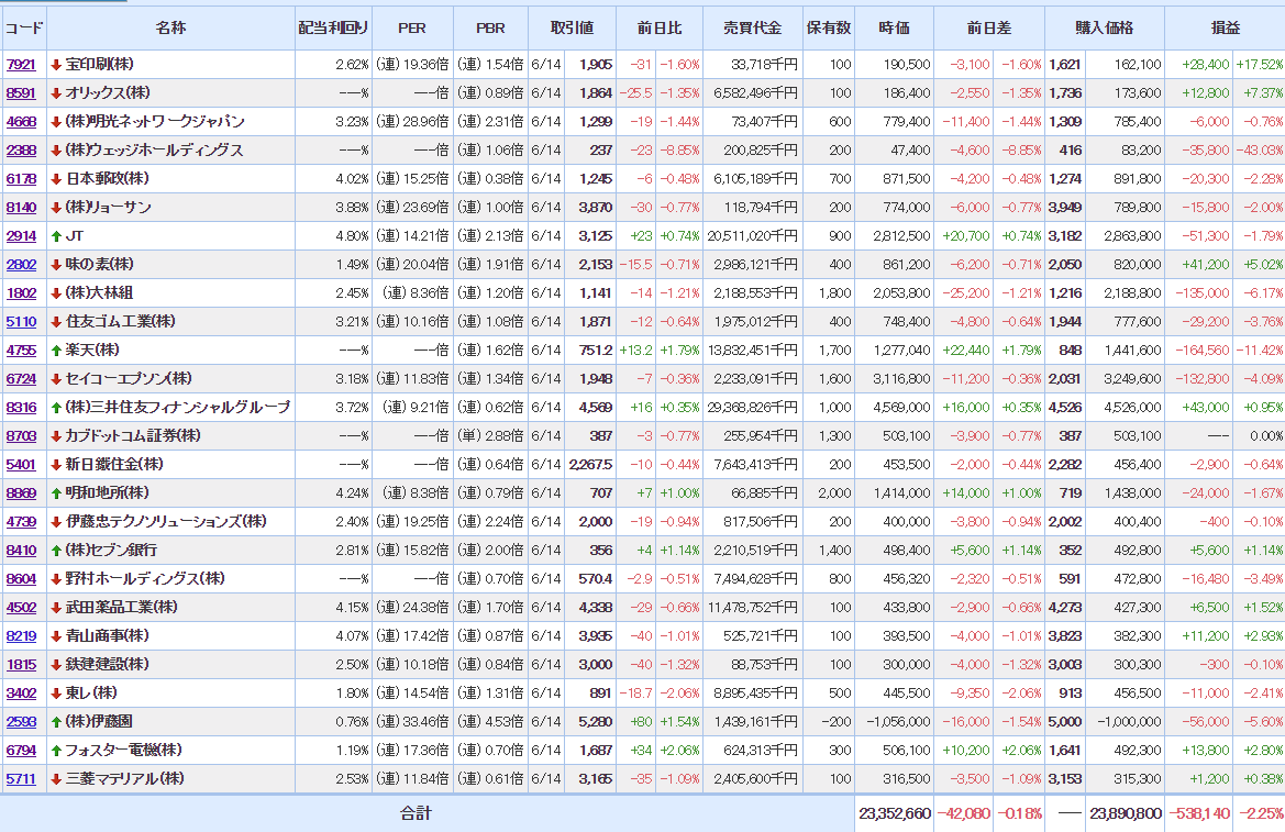 先週の日経は、22,171.35→22,694.50 約520円の上昇。