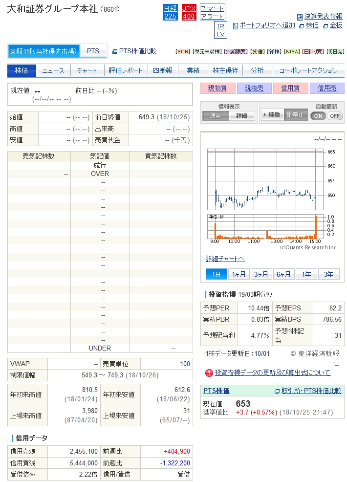今期の配当予想が38円のため、本日終値638.4円に対する予想配当利回りは5.95%(→10/25時点、配当予想31円のため終値649円に対し4.86%となります)となりました。
