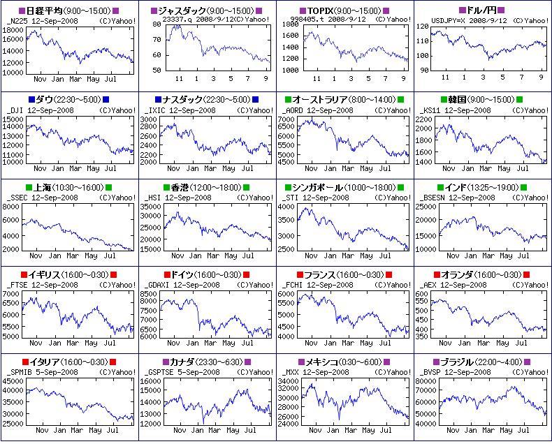 マーケットは、Goldman Sachsの含み損の拡大に恐れをなしたり、Lehman Brothersの救済もしくは資本注入でFannieやFreddieと同じように株券が紙屑同様になることを恐れているのだとか。