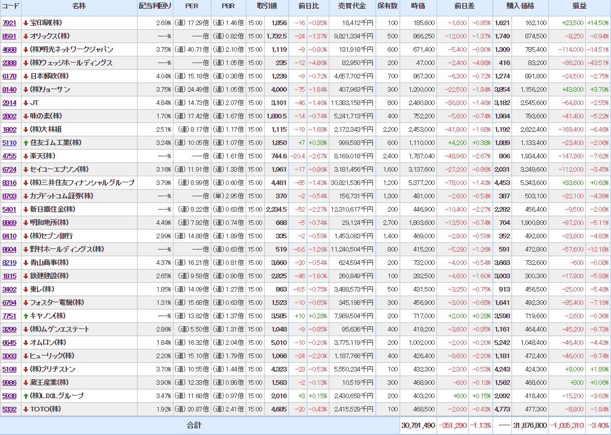 (この銘柄には苦労させられる。ナンピン→リバ→ナンピン売却の繰返し)