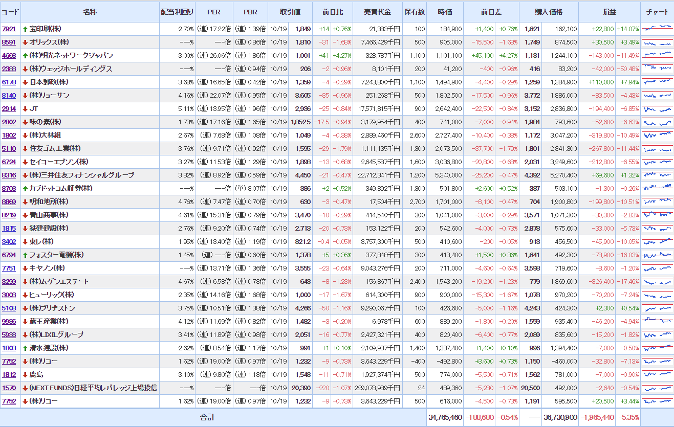 10/15-10/19:△2,115,200→△1,965,440 +149,760(実現益+)○
