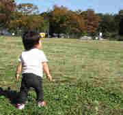 1歳4ヶ月で、靴を履かすと喜ぶのだが、道路や店内で歩かすのも危なっかしいので、ついに公園デビューさせた。