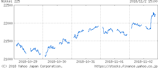 結果は、大ハズレ。流石に21,000は割れない。22,500も超えてこない。