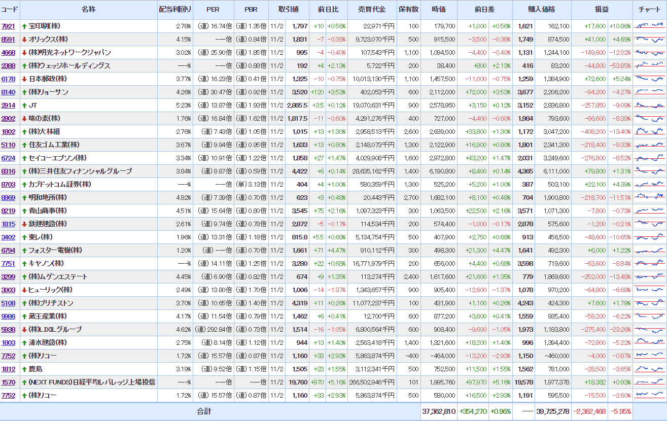 10/29-11/02:△3,715,458→△2,362,468+1,352,990(実現益+)○