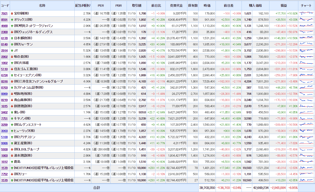利益の出てる銘柄は利確しているので、含み損状態はしばらく続く。