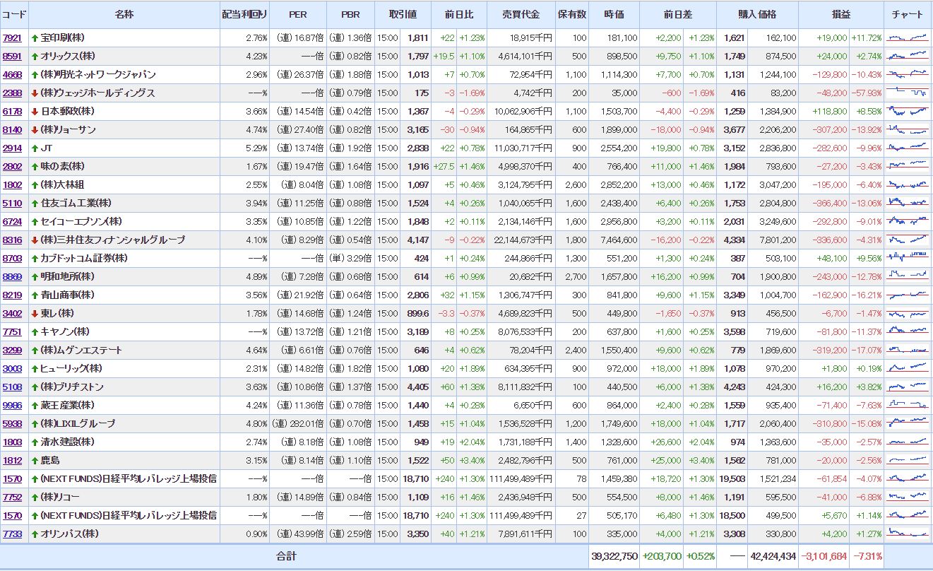 マイPFは、大幅に含み損を増加させ意気消沈状態。