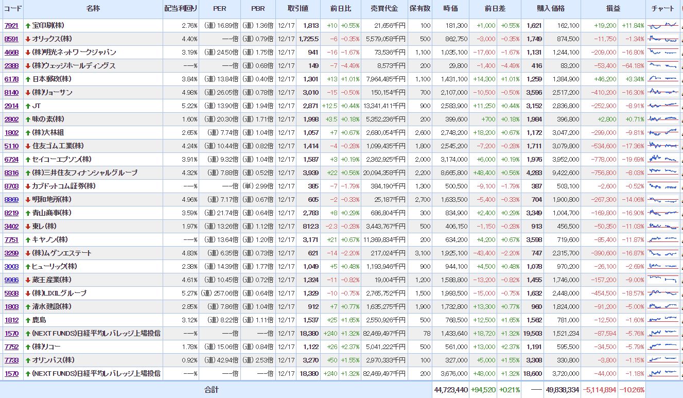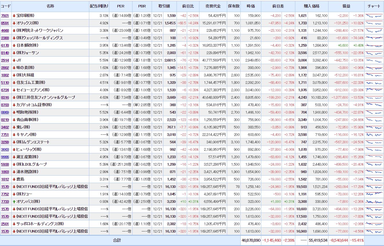 マイPFは、大幅に含み損を増加させ意気消沈状態。