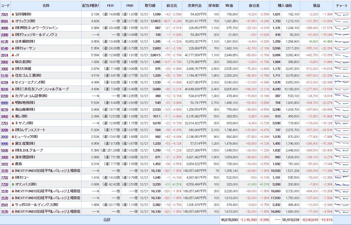 年末なので、税金対策で損切クロス、あるいは本当に損切り