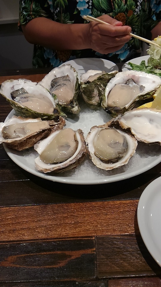 して、昨日からオイスターバーが半額だったので贅沢して生牡蠣を二人で