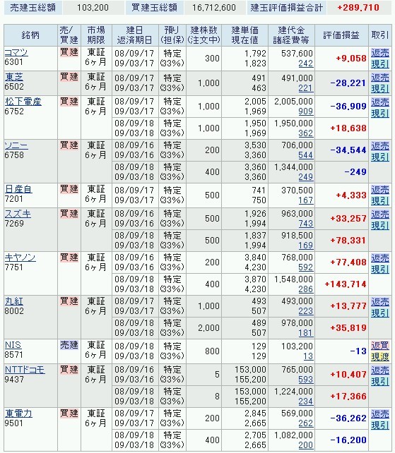 って殆ど信用買い建てですか?(^^;ガンバリマスネ…