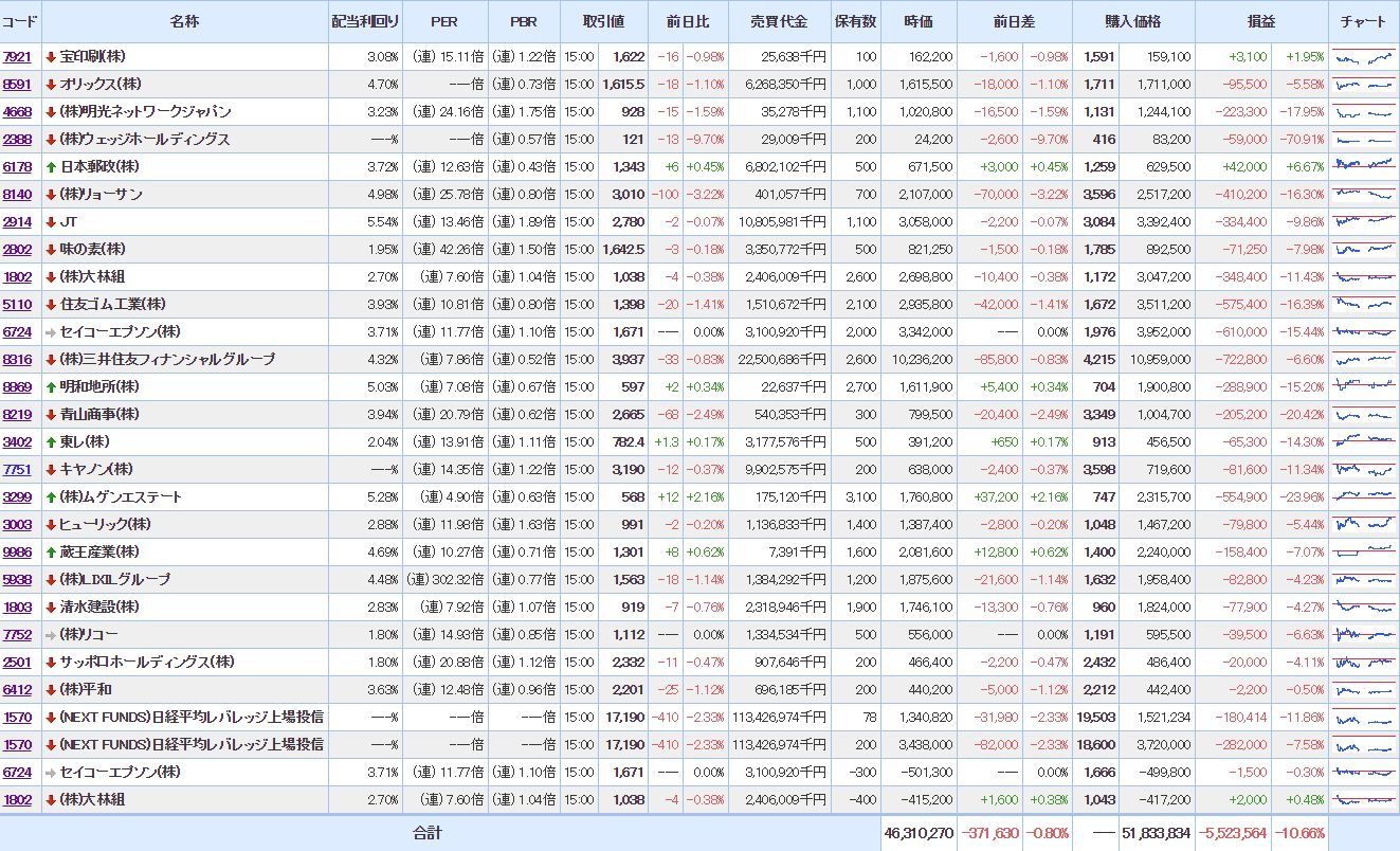 (薄利撤退。建設株にポジションを傾けすぎているので修正したい。)