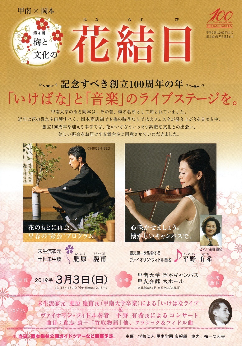 今日は、卒業生である未生流家元の肥原慶甫(ひはらけいほ)氏と