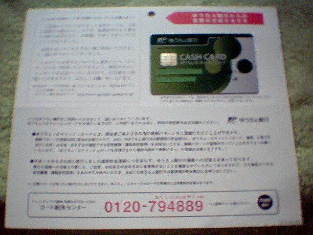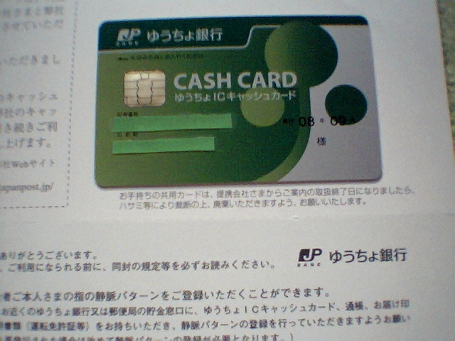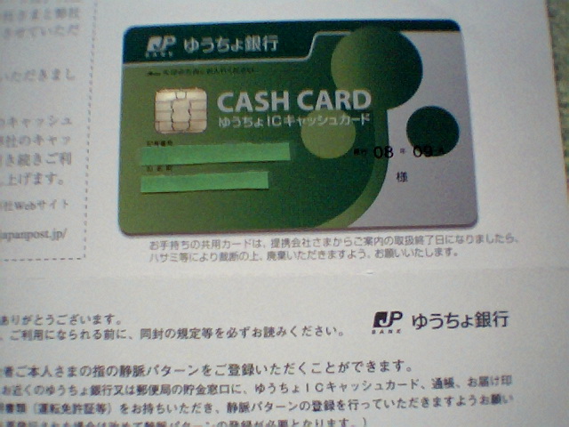ゆうちょ銀行になるというお知らせは来たのですが、キャッシュカードは来てないなぁー…。