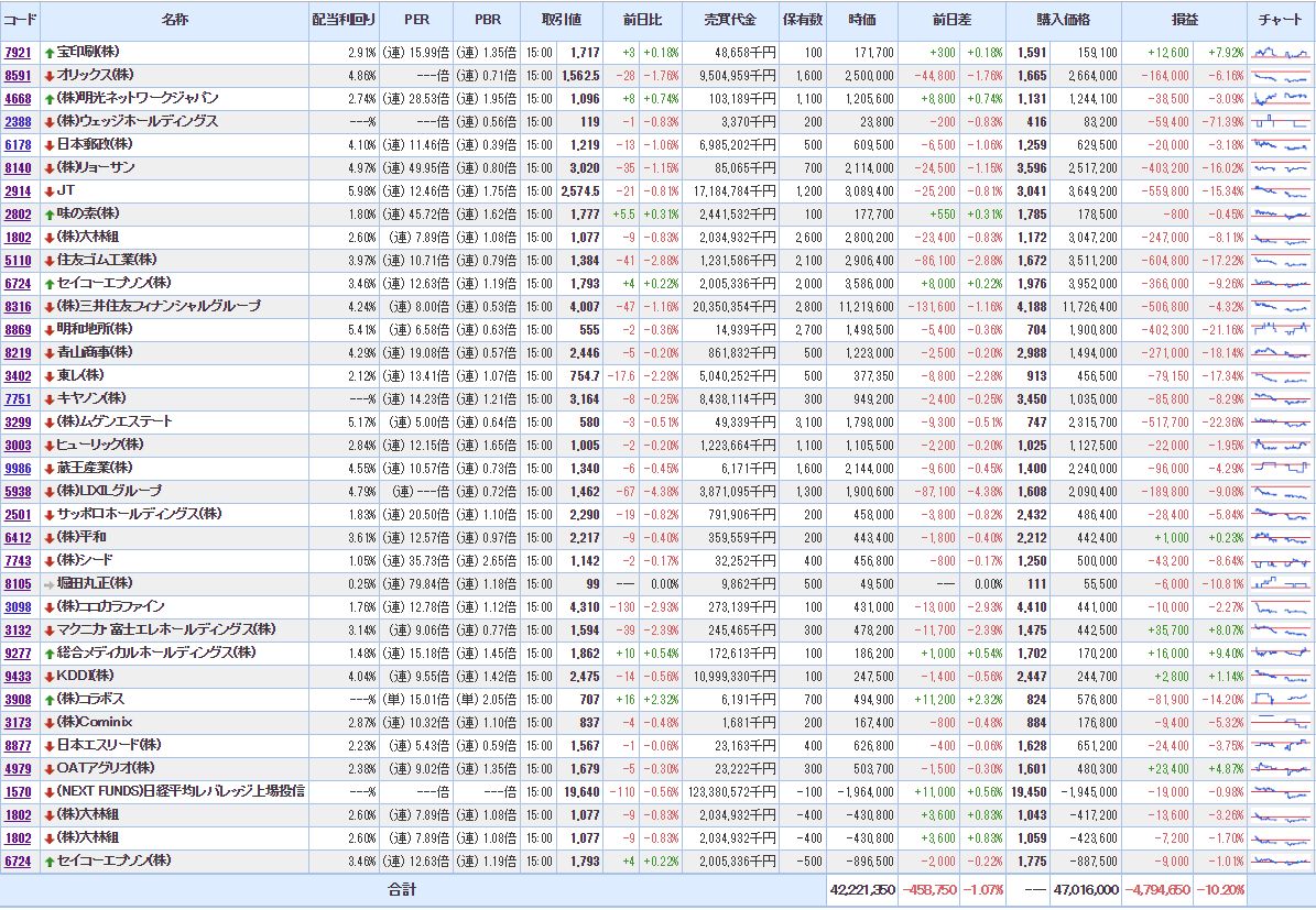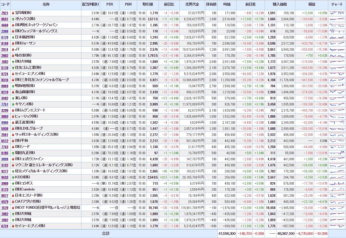 マイPFは、依然として多額の含み損を抱え動きにくい。