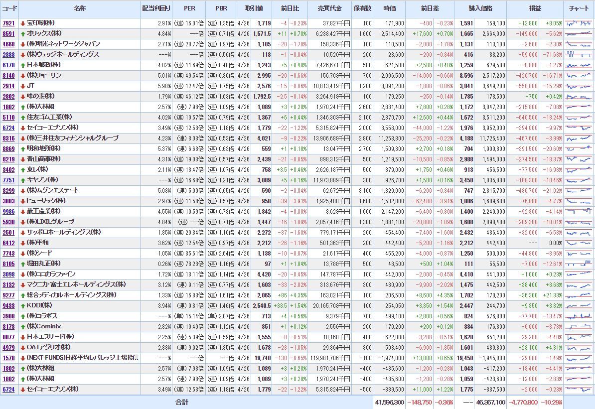 04/22-04/26:△4,403,650→△4,770,800 △ 367,150(実現益+ 4,826)×