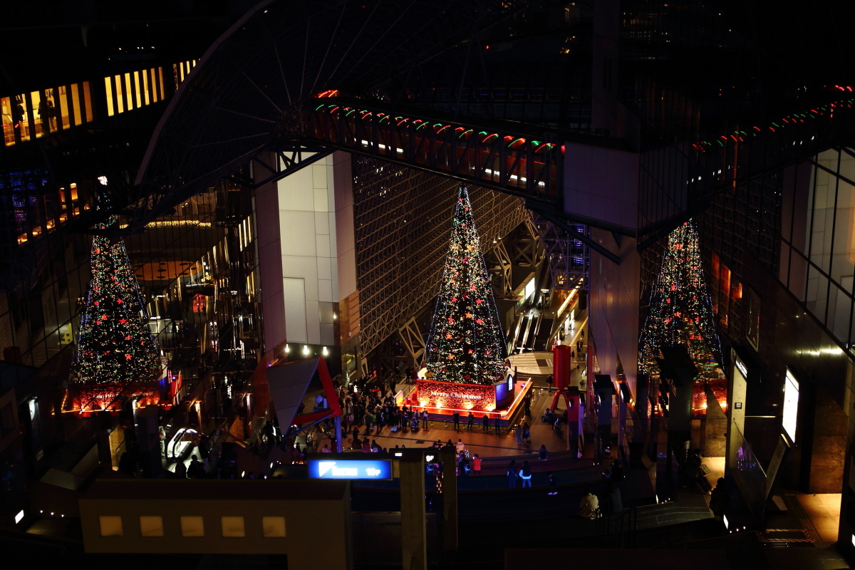 京都駅のクリスマスツリーは結構大きくて有名です。
