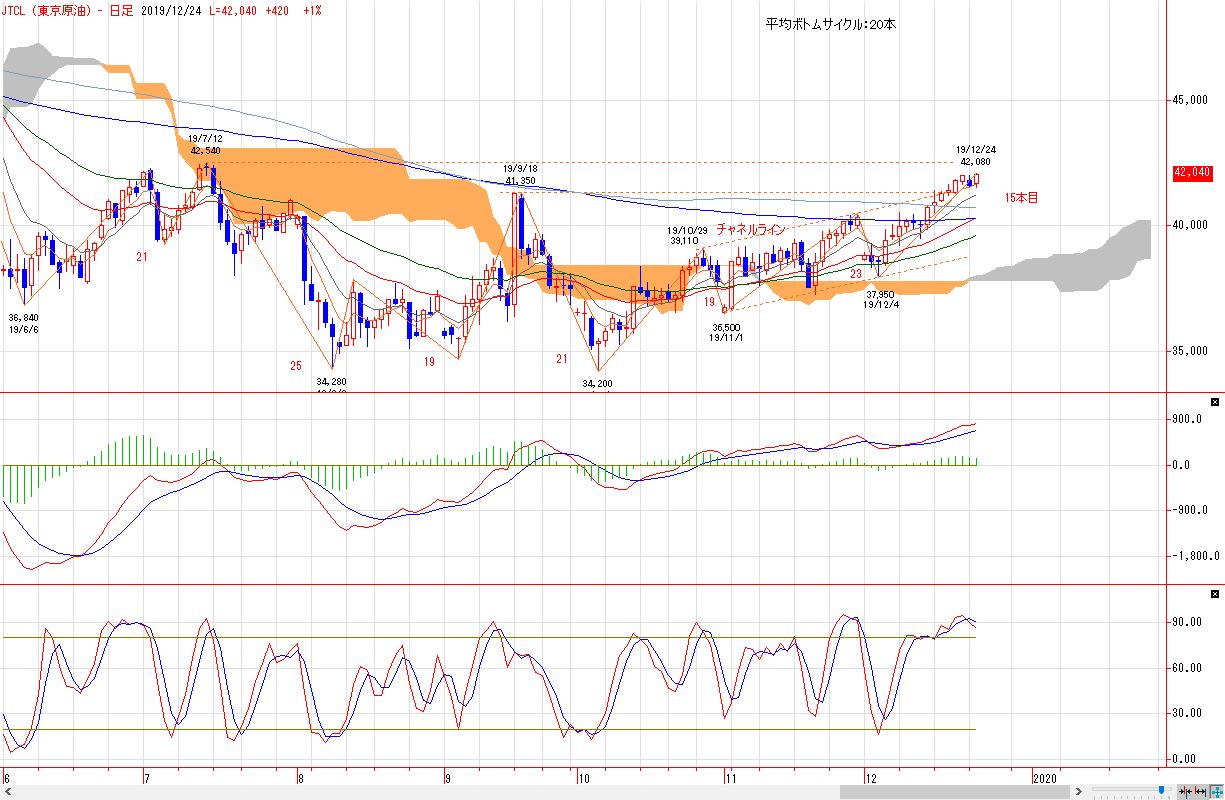 ボトムサイクル分析は本日で15本目を形成しており、平均ボトムサイクルが20本であることから、あと5本程度の日柄が想定される。