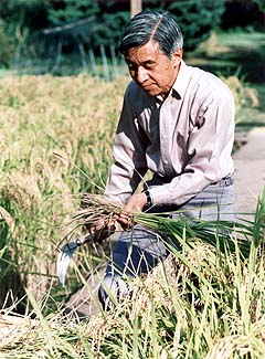 陛下は同日中にうるち米の「ニホンマサリ」と、もち米の「マンゲツモチ」を計100株刈られたそうです。