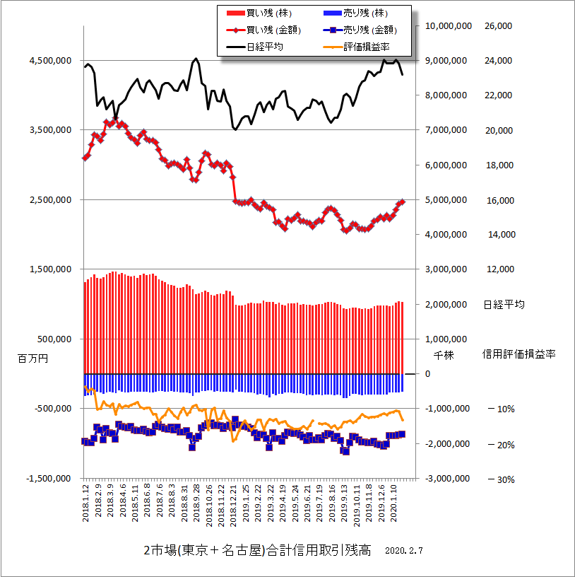 で、1/31現在の信用取引残高のグラフです。