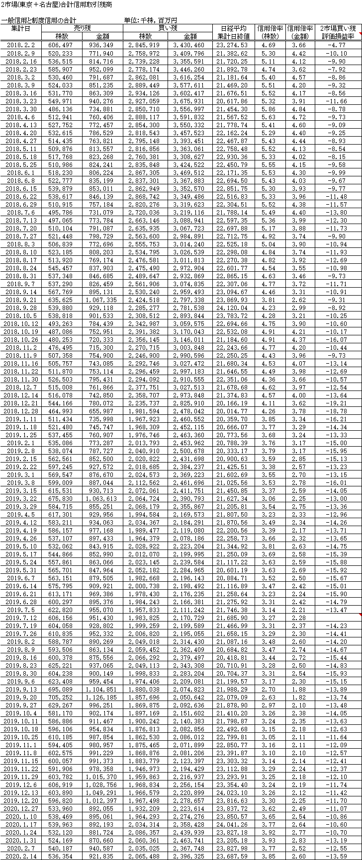 売り残が減って買い残が増えていますが、いずれも少し。信用評価損益率は悪化しています。