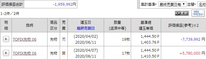 現在の建玉は