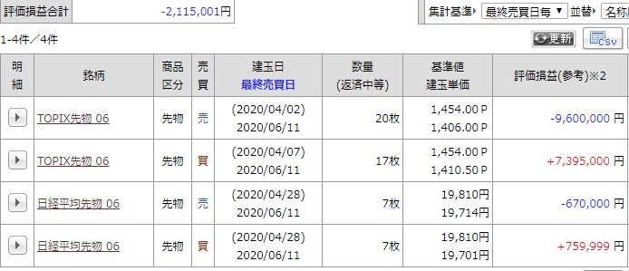引け時点での4月の実現損益