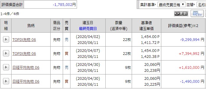 現在の建玉は