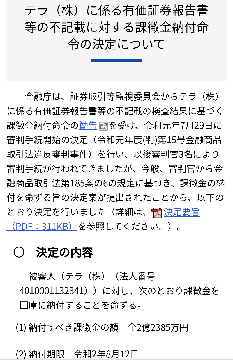 テラの週刊誌記事はひどい。なんか悪意あるわ。それとは別に、テラの経理してる人だめですよー。手抜きするから金融庁から命令されたじゃないですかー。やっとアンジェスさんに追いついたとおもったのに泣。ちゃんと納税して、がんばって下さい! 応援してます!