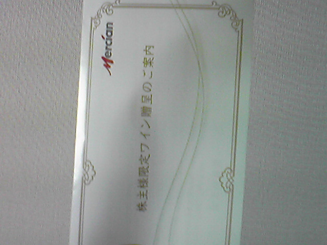 さっき宅急便の人が来て起こされたのですが、なんだろうと思ったらメルシャンの株主優待でした。もちろんワイン。しばらく寝かせて置けば良い値になったりして!と思ったのですが、白ワインだしとっと飲めって事かな?
