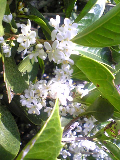良い匂いがしました。何だろうと見るとこの花でした。きんもくせいの元のぎんもくせいです。