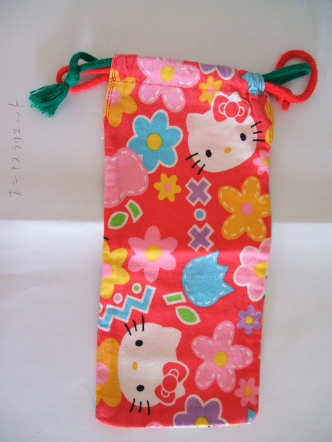キティちゃんのお食事袋、上手に仕上がっていますね。
