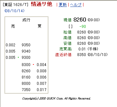 (1)本日の1626の寄り付き直後です。ヘンな始値となりました。