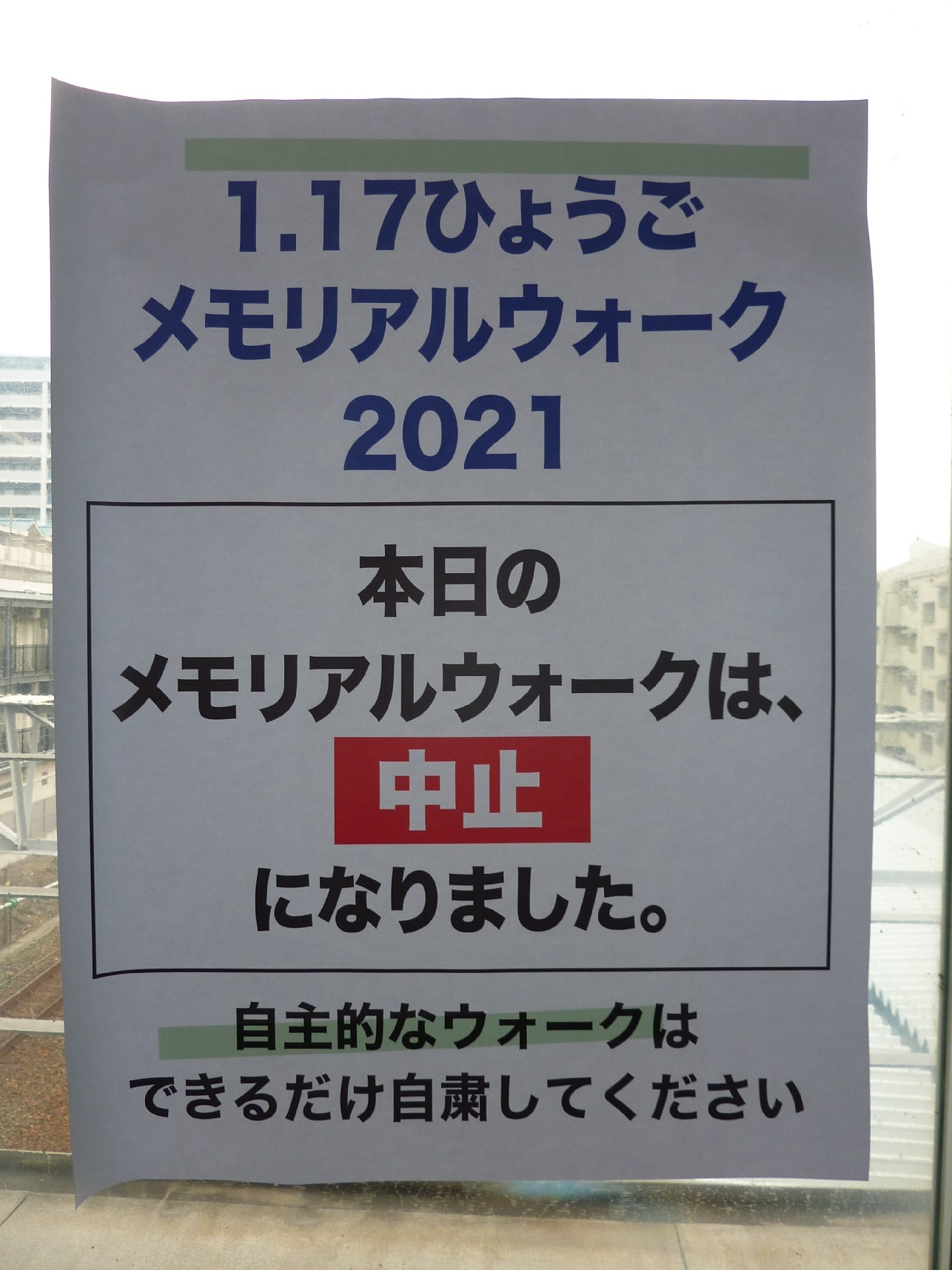 毎年参加していた「ひょうごメモリアルウォーク」中止の連絡が来ていましたが、