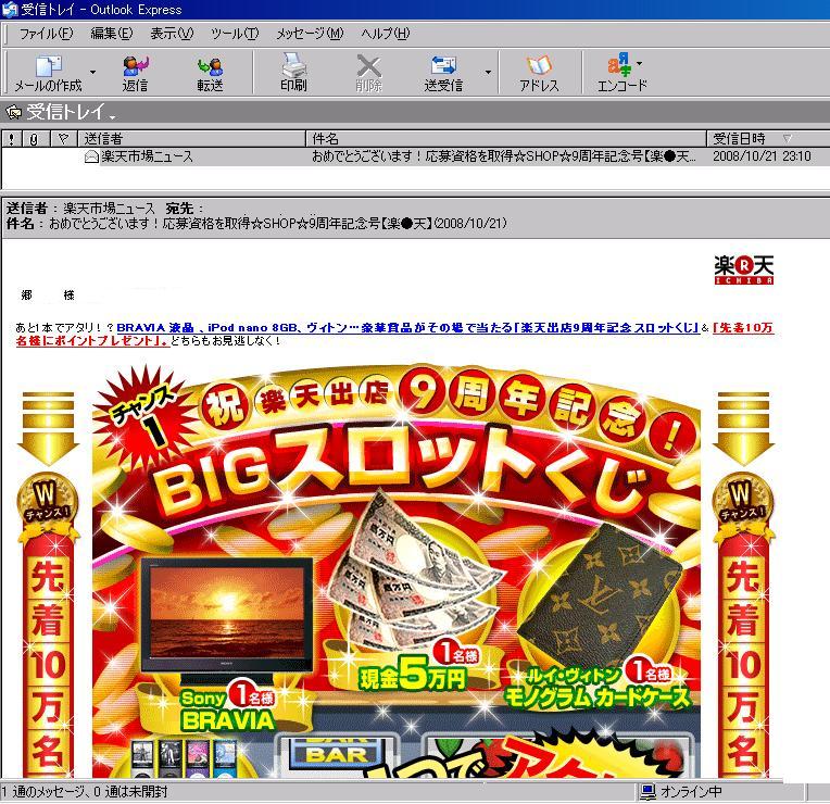 おめでとうございます!応募資格を取得☆SHOP☆9周年記念号【楽●天】(2008/10/21)