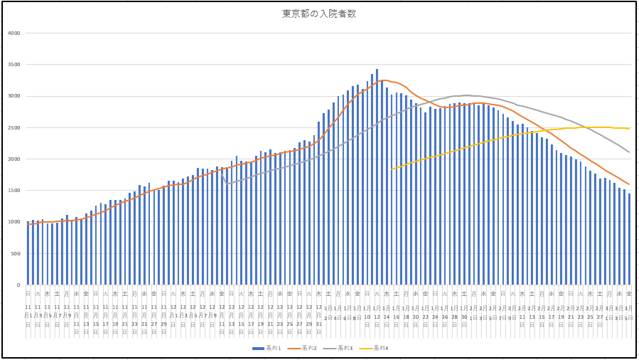 東京都の現在の入院患者数、
