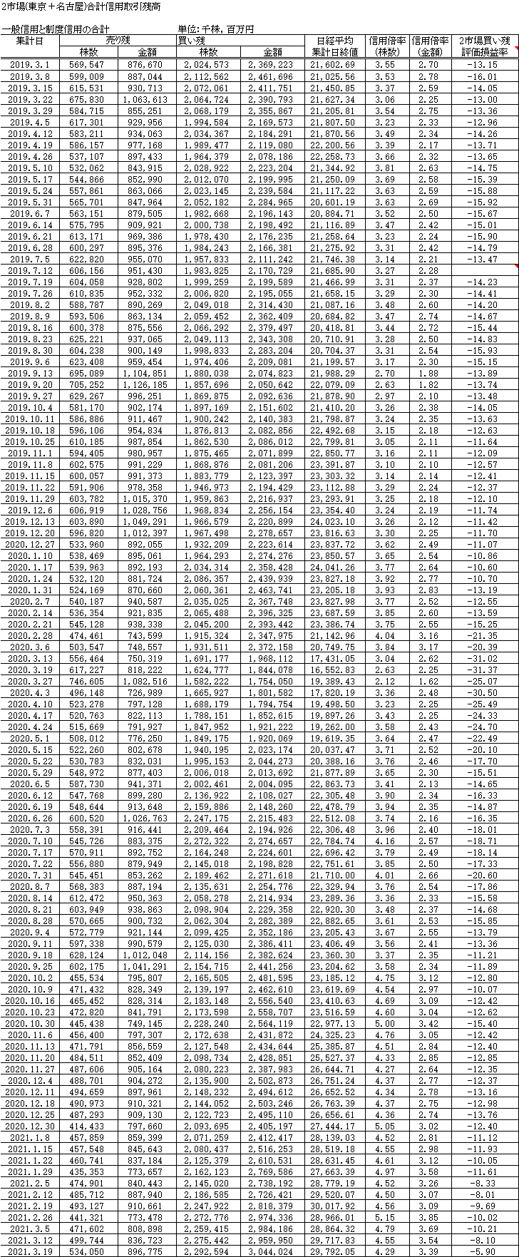 と前置きはそのくらいにして、3/19現在の信用取引残高のグラフです。