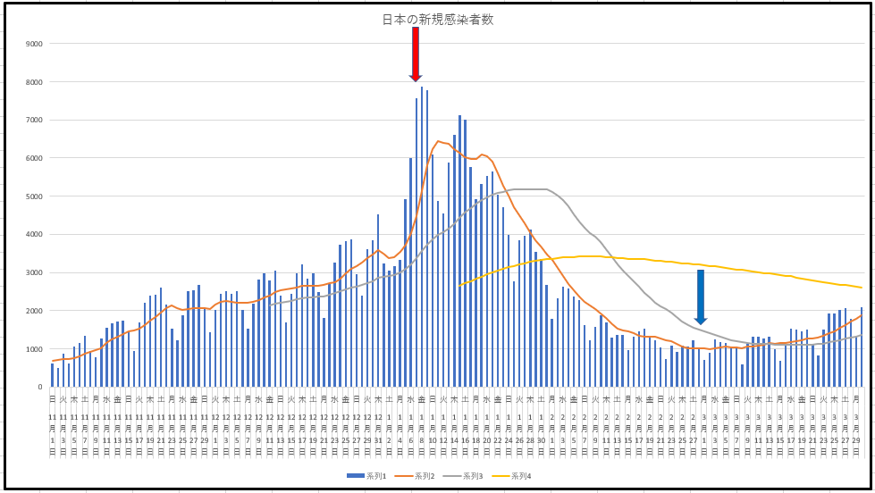 というわけで今朝は、まず昨日の東京都と日本の新規感染の推移を添付して、コメにてそれぞれの入院および患者数の推移を添付します。木金にかけてさらに上昇が顕著になるでしょうね。宣言はいいから飛沫感染に注意しましょう。