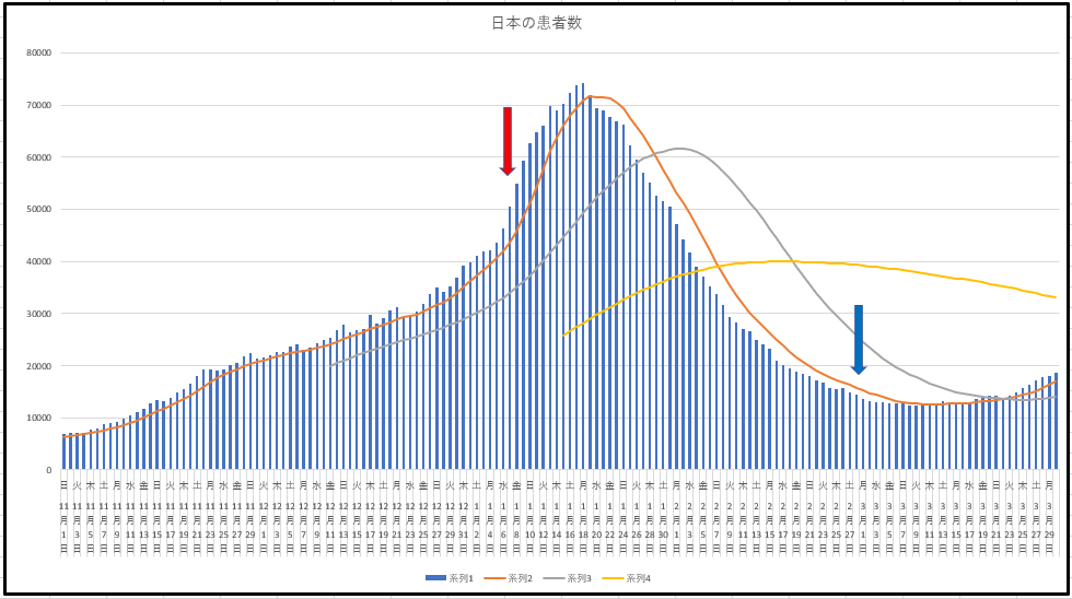 東京都は入院患者数の推移。日本は患者数。