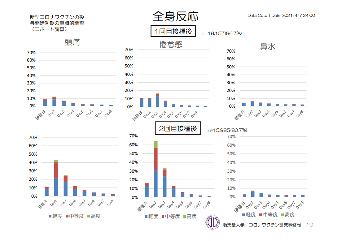 結論:特に2回目接種後については、接種後の安静や静養をできるべくスケジュール(仕事など)に余裕を持たせておいた方がよく、特に接種翌日は休暇を取るなどした方が無難で可能であれば数日余裕を持たせた方がよい。