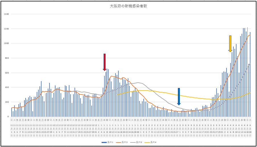 大阪のグラフを作ったので、今後は日本のデータ上では