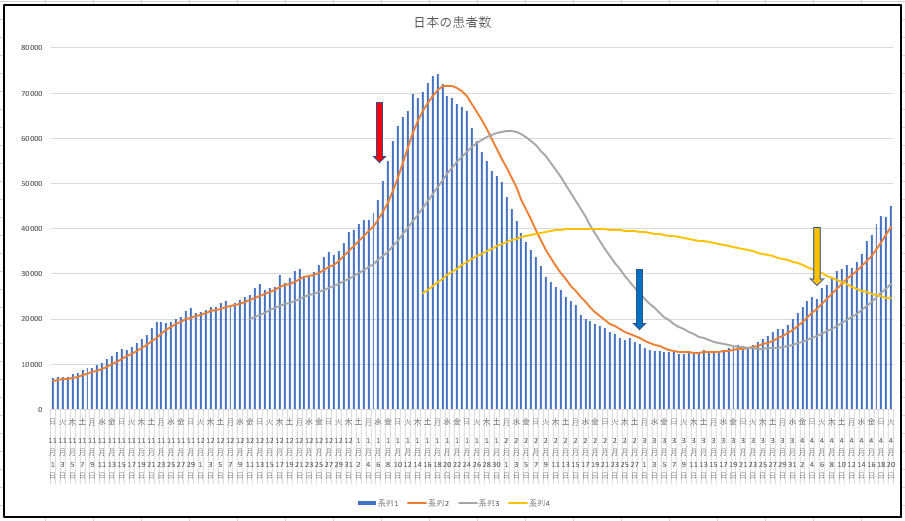 まん延防止の日をオレンジ矢印で入れてましたが、