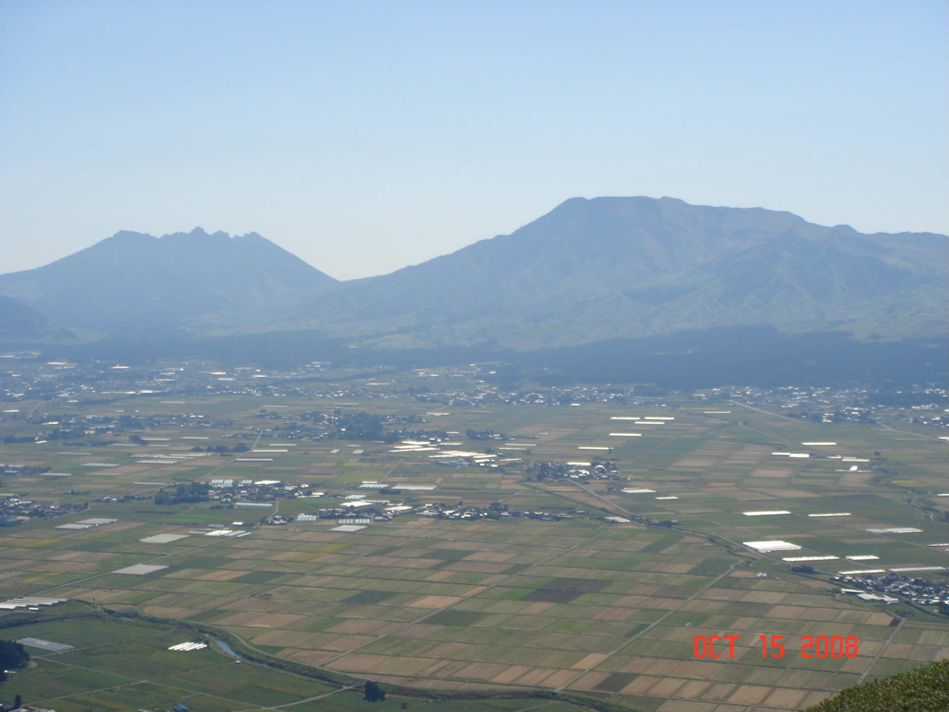 大観峰もいい景観です。ここではどういうわけかそんなに暑くないのにソフト食べてる人が多かったです。今回はお風呂にも入っていないので食べませんでした。