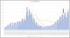 東京都と大阪府の新規感染者数の推移。目ん玉飛び出る(@@)ようなびっくりにはならなくなりましたね。