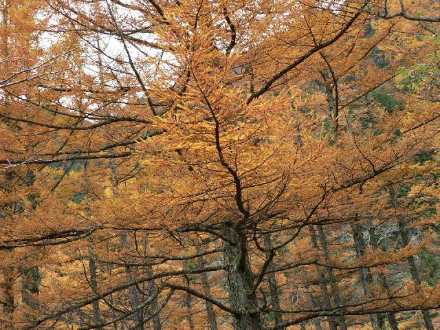 上高地のカラマツも散り始めています、今が最高紅葉日だった気がします。