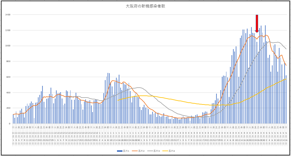 昨日のトピックスは大阪のコロナ死が東京を上回った、というニュースだった。それで患者が減り始めた?