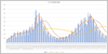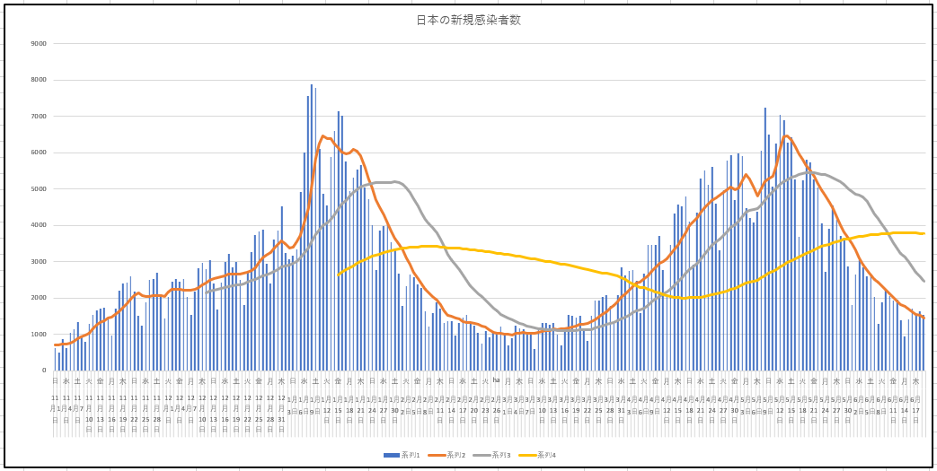同じく、日本全国の新規と現患者数の推移。